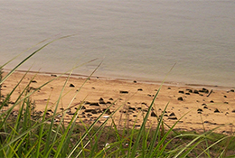 夏は すぐそばの海岸で泳げます。