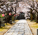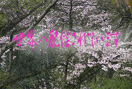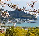 大崎下島の天満神社です。桜の花がきれいに咲いて輝いています。