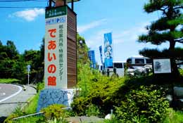 蒲刈のであいの館です。スマフォで風景をうつす多くの観光客に出会います。